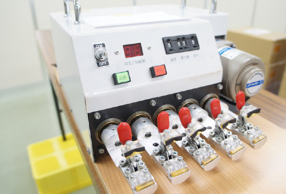 - 全自動両端圧着機では加工の難しい、多芯ケーブルの加工等に用いられます。